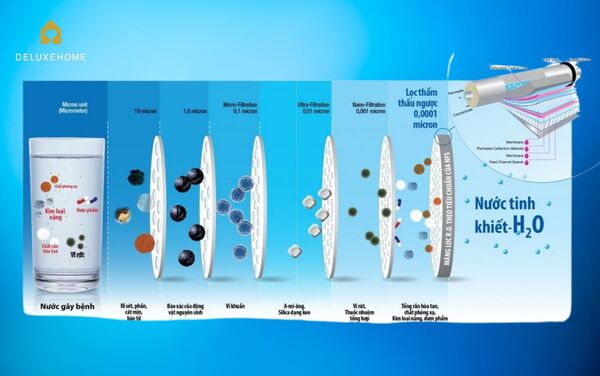 Công nghệ thẩm thấu ngược, hay còn gọi là RO, là một trong những công nghệ lọc nước phổ biến nhất hiện nay. RO hoạt động dựa trên nguyên lý đẩy nước qua màng lọc siêu nhỏ (có kích thước lỗ lọc khoảng 0.0001 micron), loại bỏ hầu hết các chất gây ô nhiễm, bao gồm vi khuẩn, virus, kim loại nặng, và các chất hữu cơ.