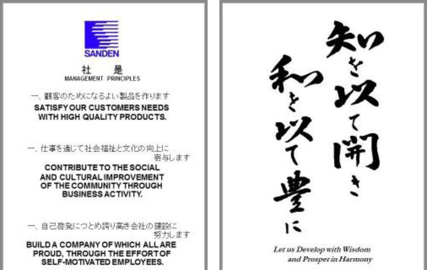 Sứ mệnh và chỉ tiêu chất lượng tập đoàn Sanden