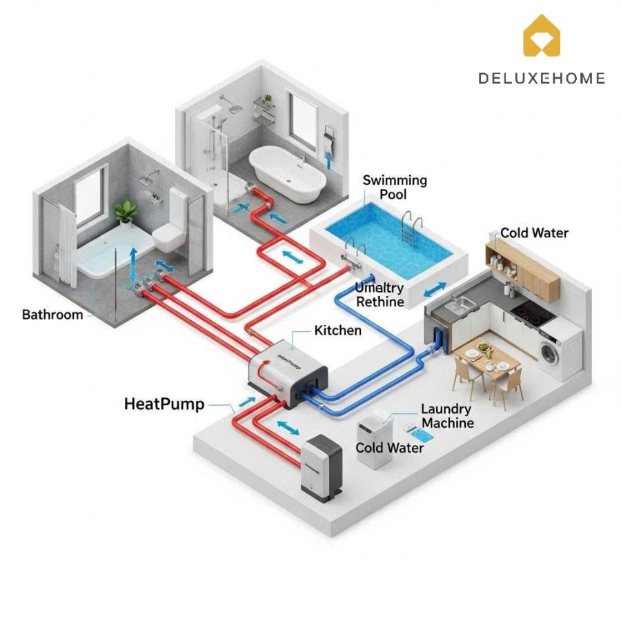 Trong bối cảnh các tiêu chuẩn sống và vận hành công trình ngày càng cao, hệ thống HeatPump là giải pháp tối ưu cho nhu cầu nước nóng: tiết kiệm, an toàn, bền bỉ và thân thiện môi trường. Việc thay thế bình nóng lạnh truyền thống không chỉ mang lại hiệu quả kinh tế mà còn là bước đi chiến lược để công trình đạt chuẩn hiện đại và bền vững. Hãy liên hệ Deluxe Home ngay hôm nay để được:- Tư vấn miễn phí giải pháp xử lý nước cứng, clo nặng phù hợp